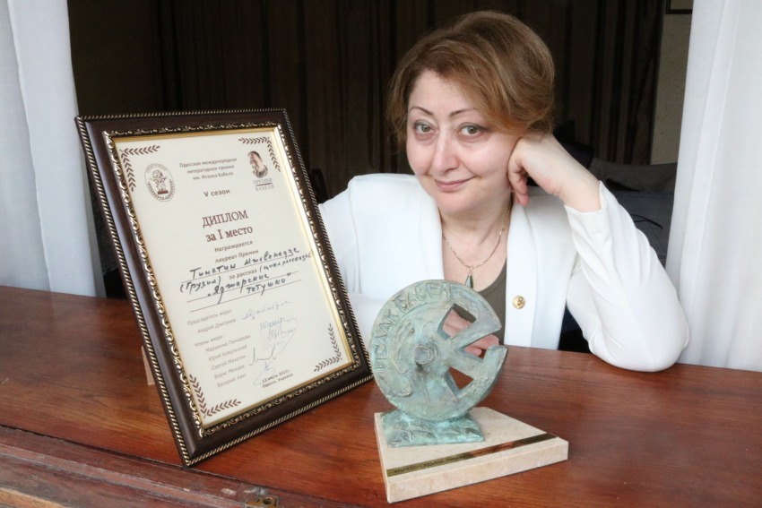 Тинатин Мжаванадзе с дипломом за I место и статуэткой «Колесо судьбы» (пятый сезон Премии Бабеля, 2021)